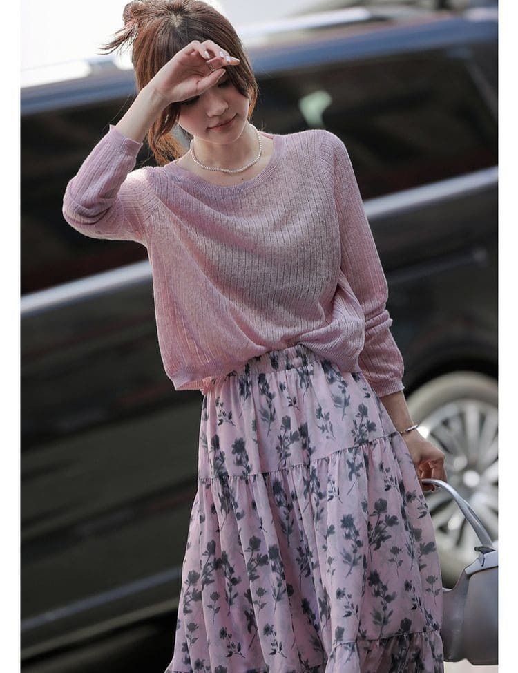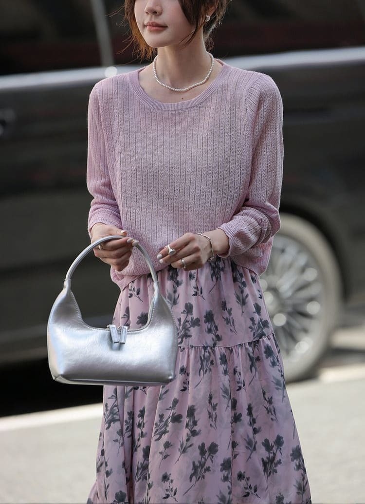 ● 圓領針織上衣:簡約圓領設計,展現頸部線條,適合多種場合穿搭。