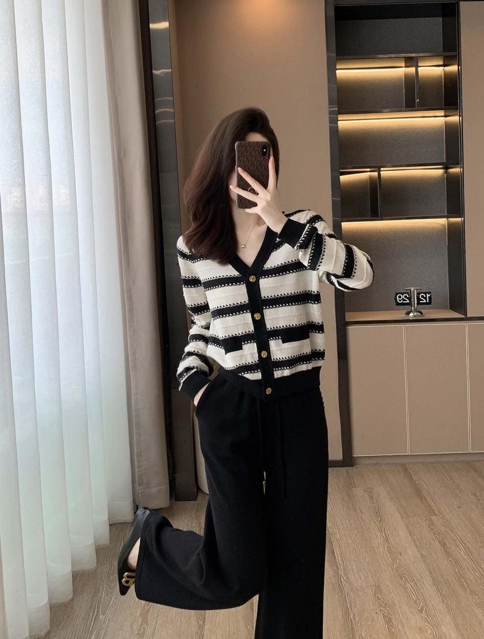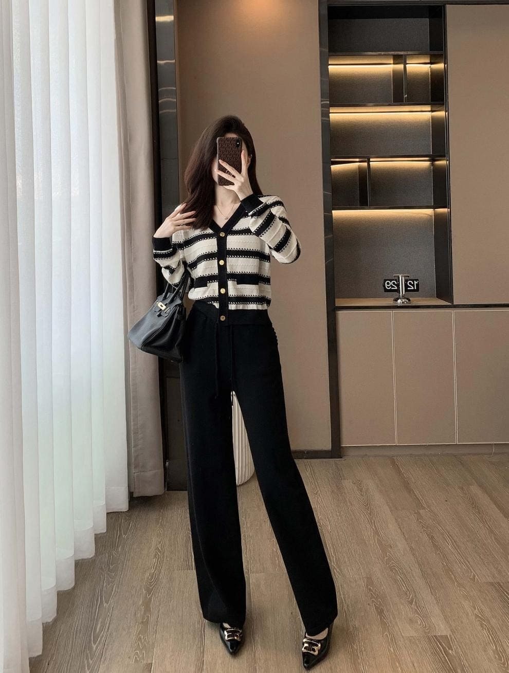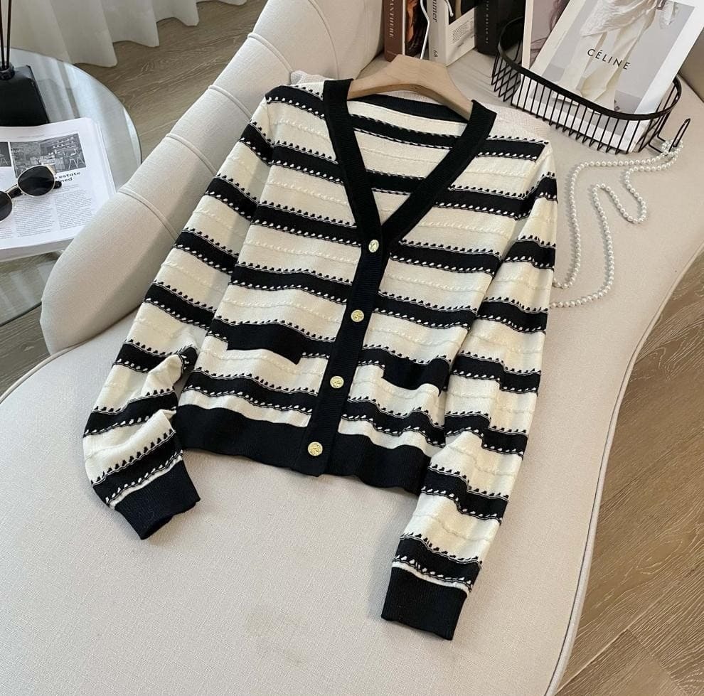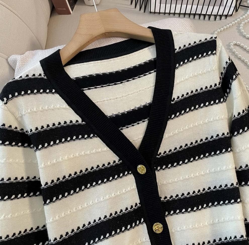 ● 經典條紋設計:黑白條紋上衣,展現時尚復古風格,百搭不厭。