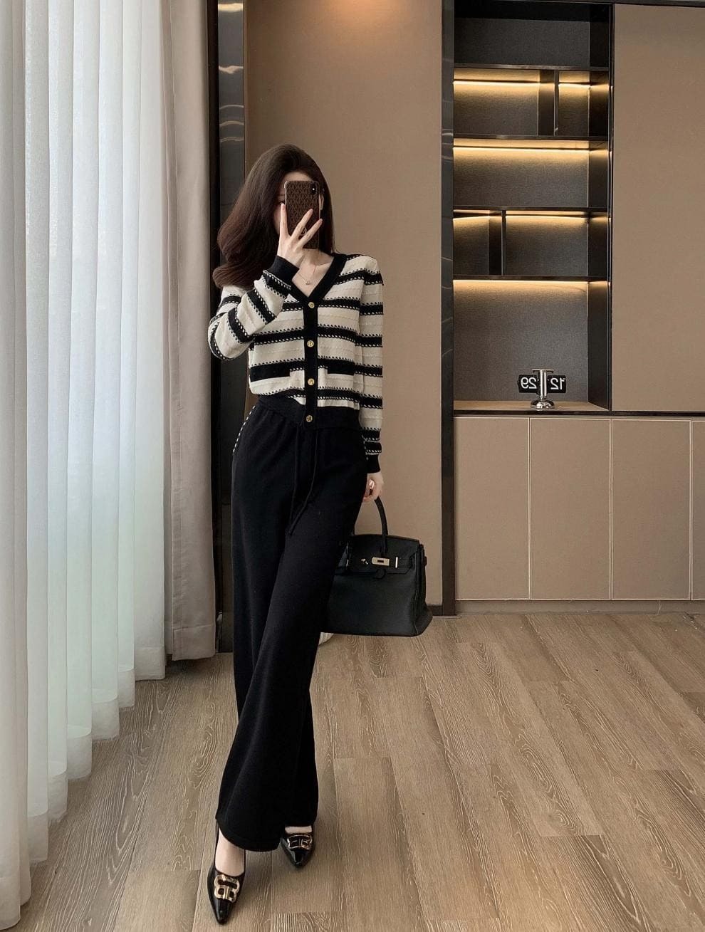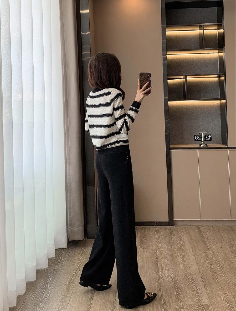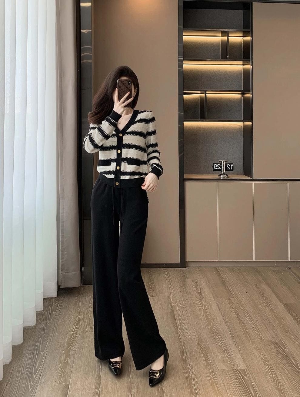 ● 經典條紋設計:黑白條紋上衣,展現時尚復古風格,百搭不厭。