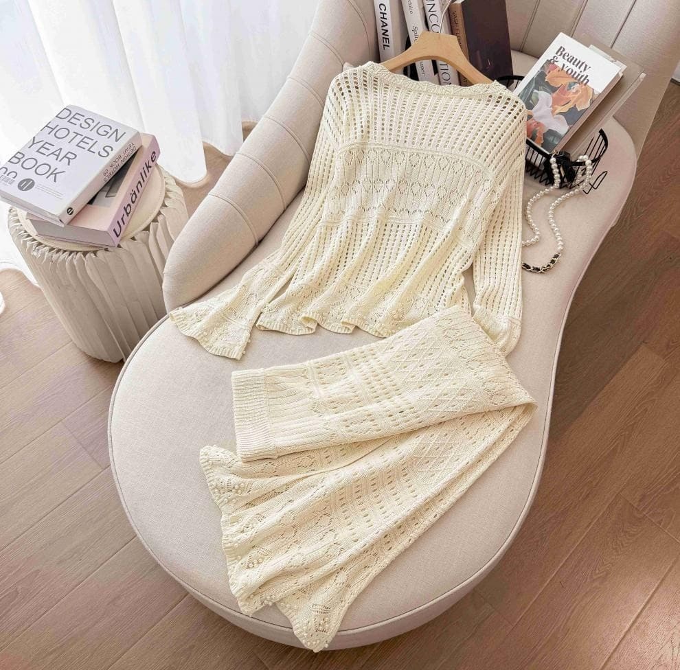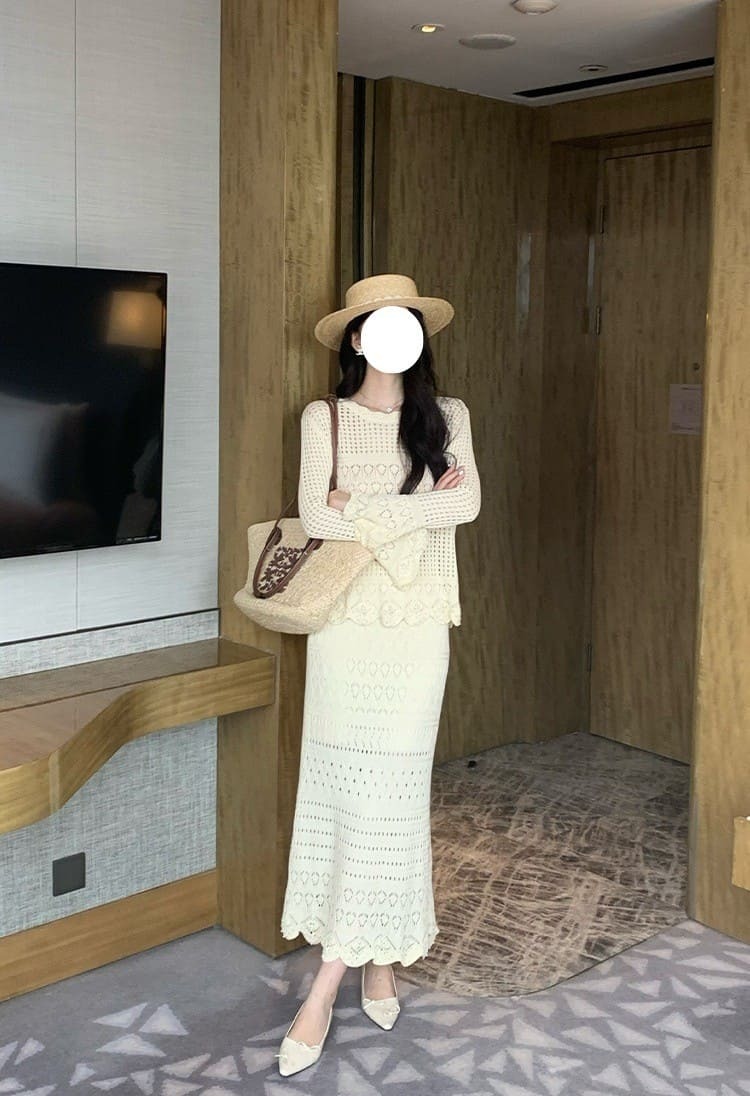 ● 兩件套組:上衣與長裙搭配,輕鬆打造整體造型。