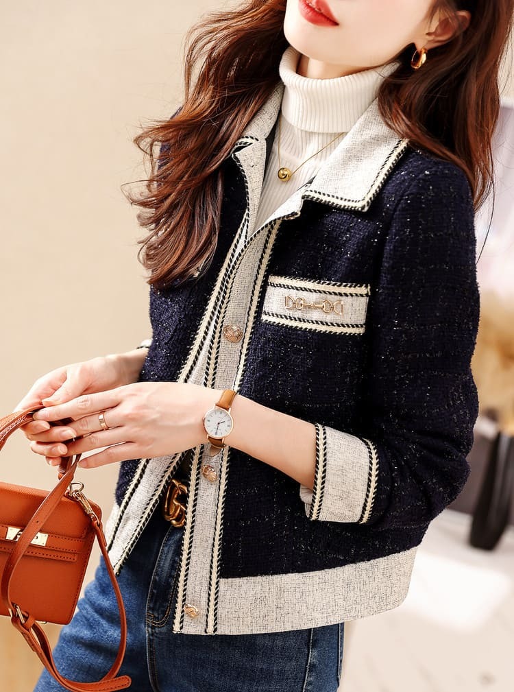 • 俐落短款設計:短款拼接設計既顯俐落又百搭,契合現代女性的高級品味追求。