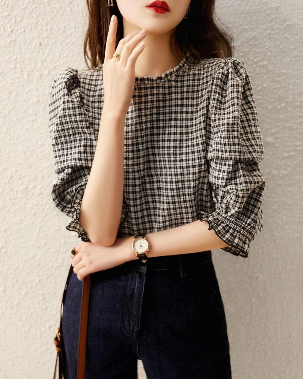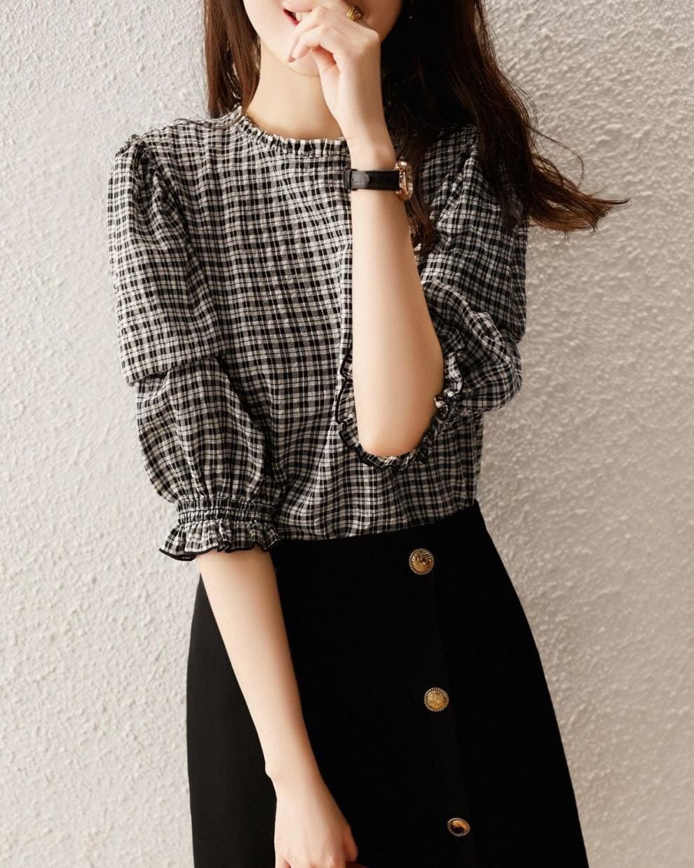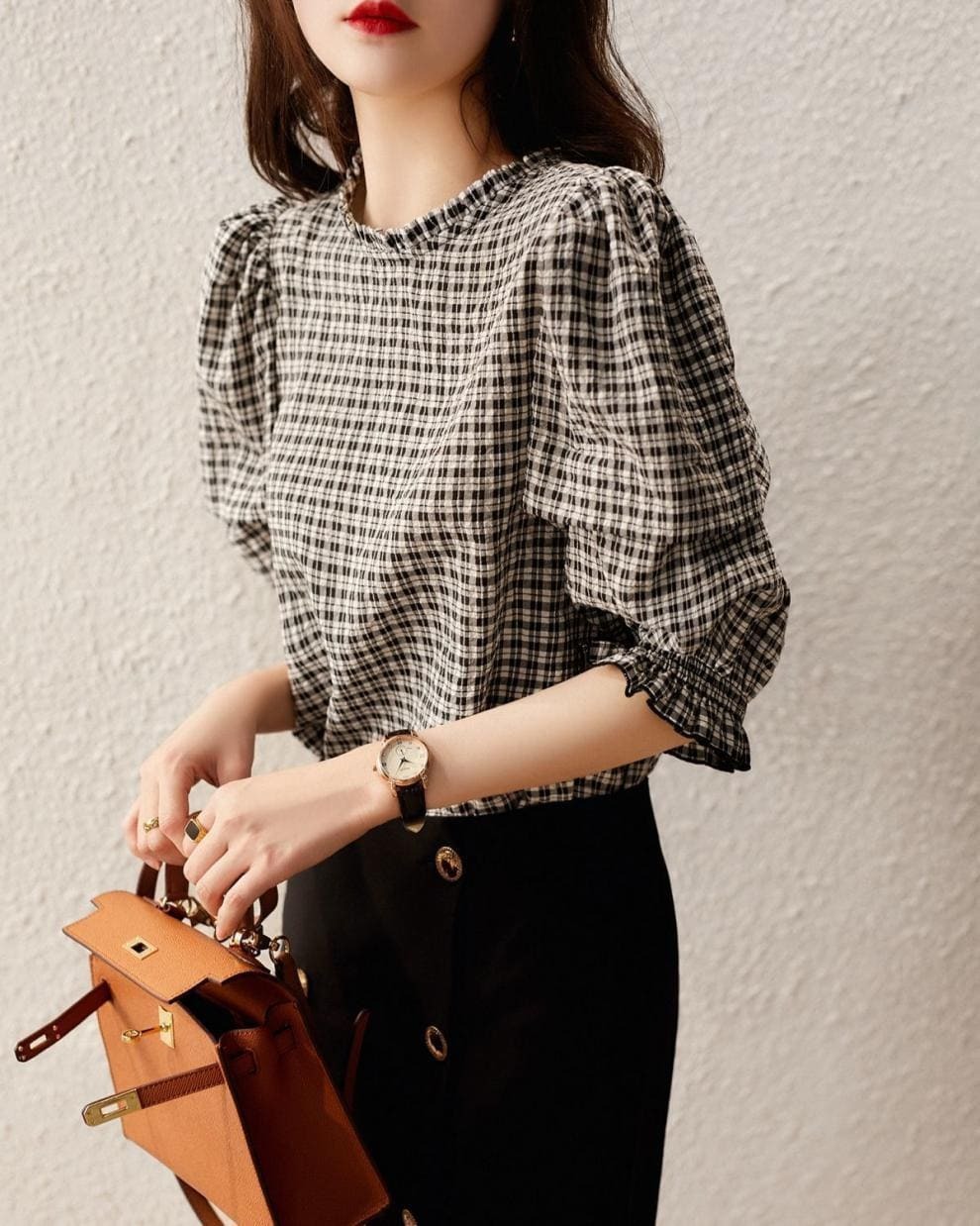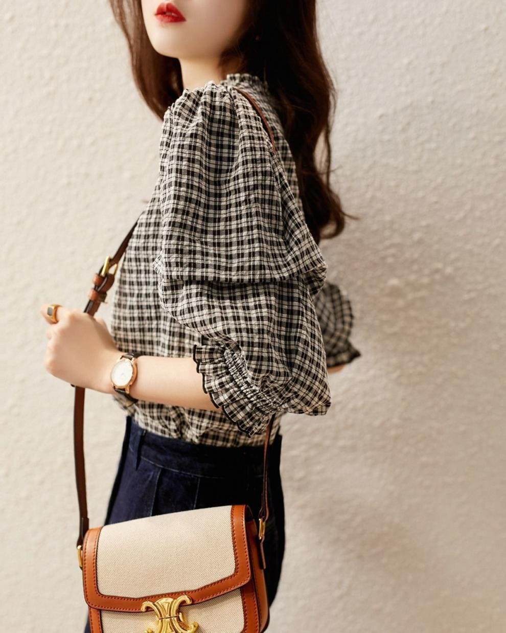 ● 優雅格紋設計:經典黑白格紋展現法式優雅,增添時尚氣息。