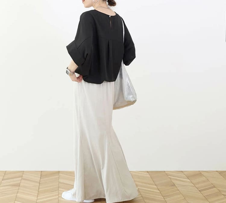 ● 五分蝙蝠袖:獨特剪裁,增添時尚感,同時提供舒適活動空間。