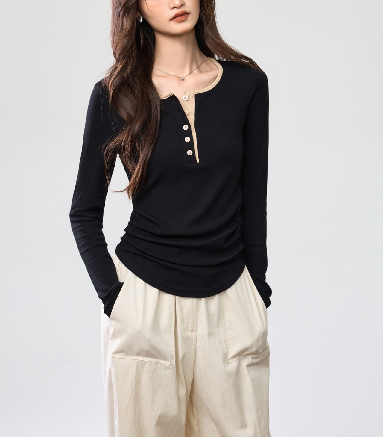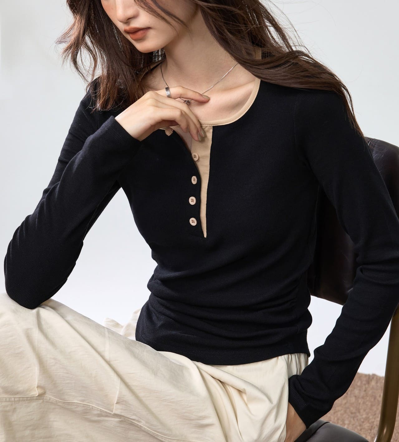 ● 撞色紐扣細節:別緻撞色紐扣,增添設計感與時尚度。