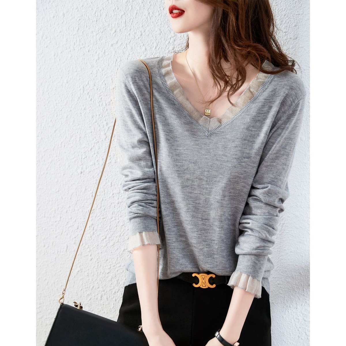 ● 優雅V領設計:精緻V型領口,搭配木耳邊拼接,展現法式浪漫。