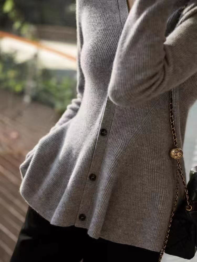 ● 修身V領:精緻V型領口,修飾臉部線條,突出鎖骨美感。