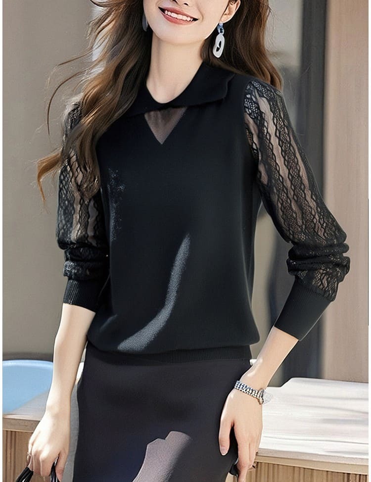 ● 蕾絲袖設計:精緻蕾絲袖口,增添女性柔美氣質。