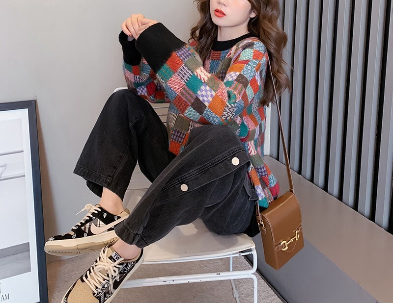● 撞色設計:多彩格紋增添視覺亮點,展現個性風格。