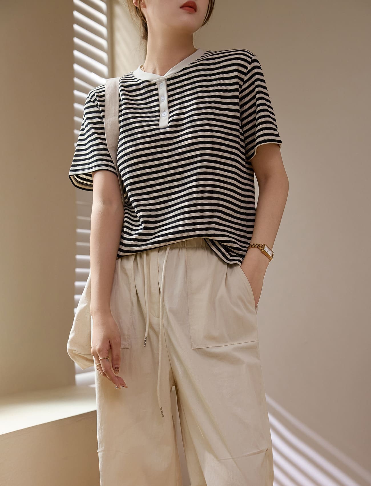 ● 條紋設計:經典條紋圖案,增添時尚感,適合多種搭配。