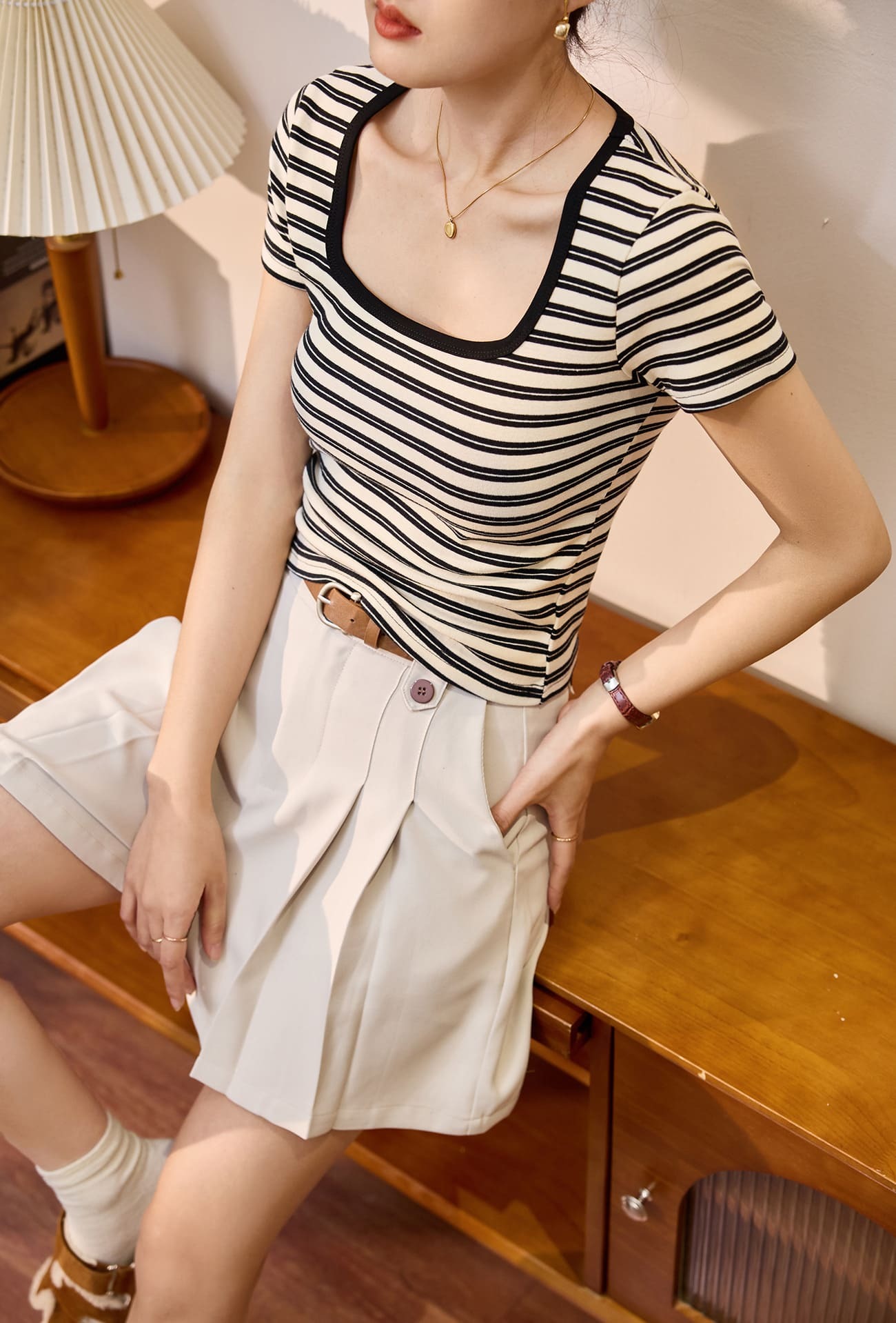 ● 修身U領設計:展現鎖骨線條,增添女性魅力。