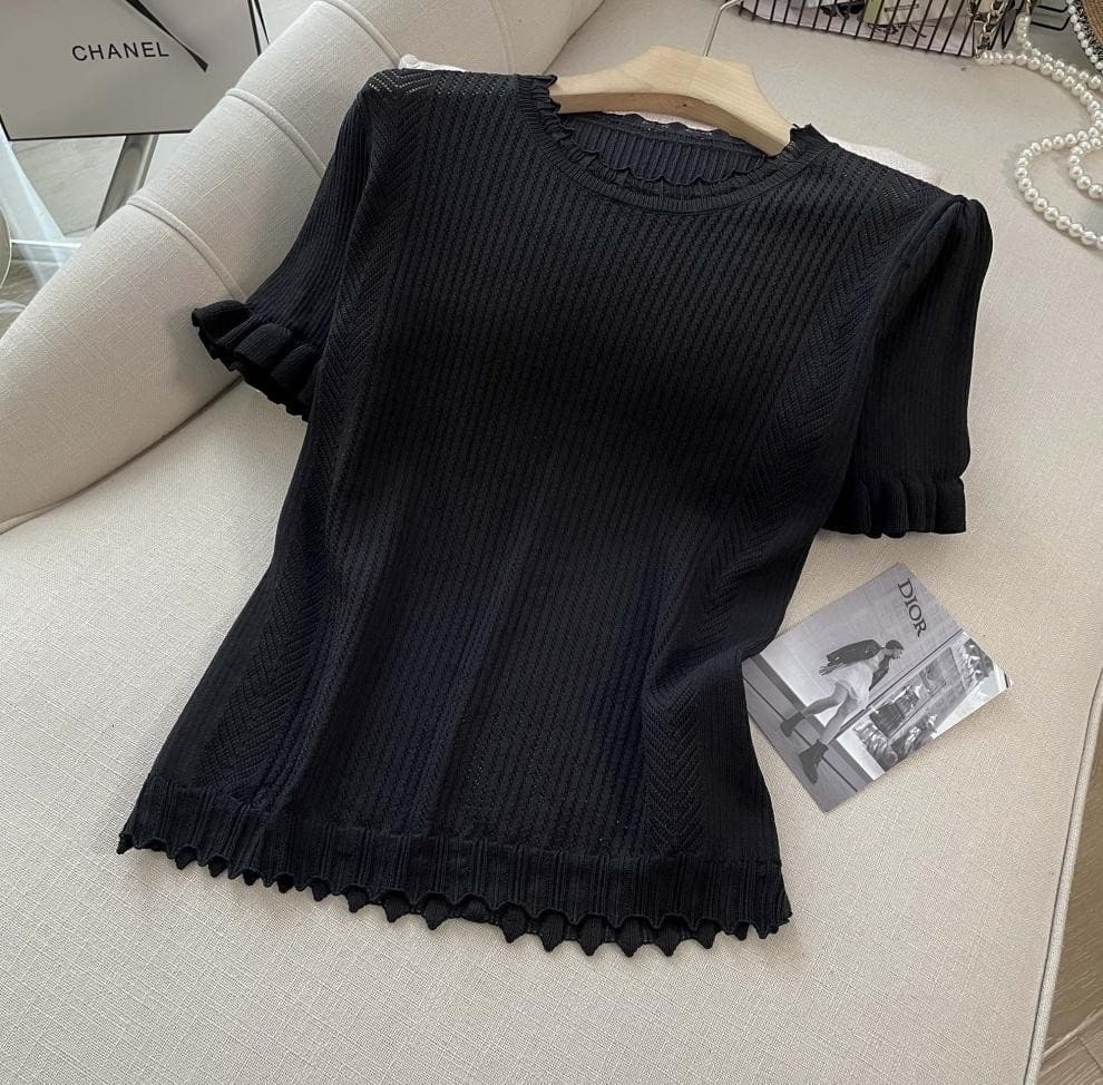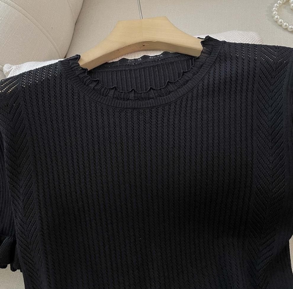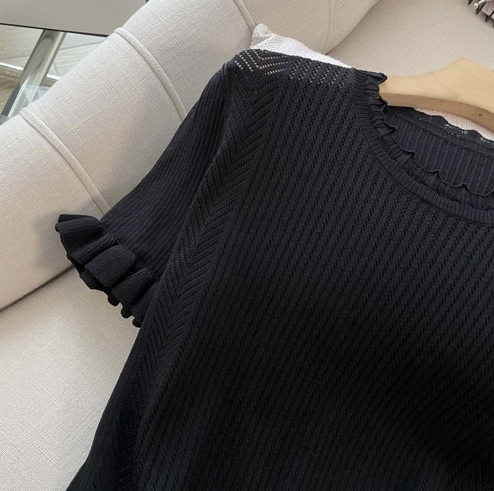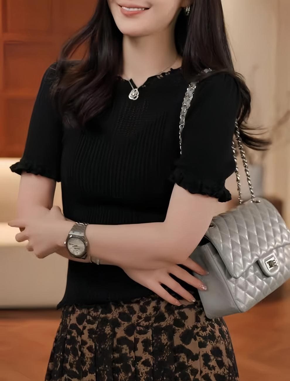 ● 精緻細節:領口與袖口的荷葉邊增添柔美感。